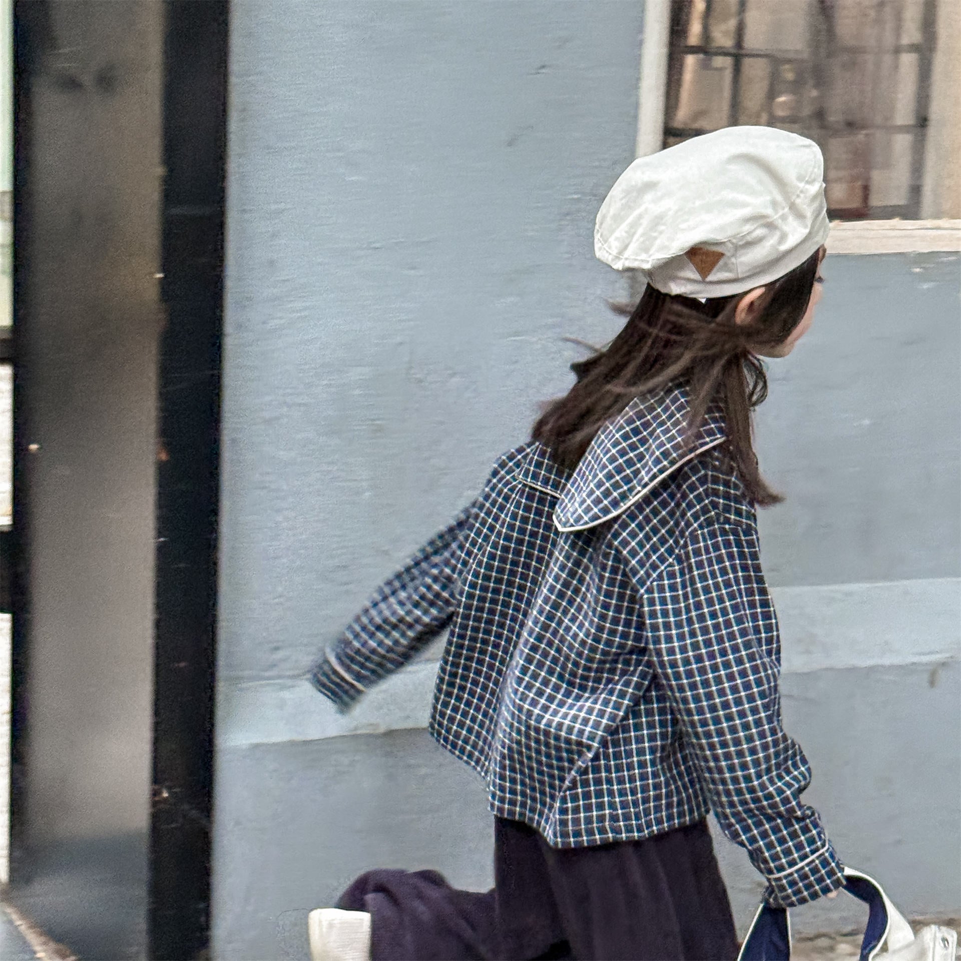 The Midnight Grid Sailor Top brings a refined twist to everyday wear. With its smart check pattern, double-breasted button look, and sailor-inspired collar, this piece blends sophistication with a touch of nostalgia. Perfect for layering or standing out on its own, it’s a versatile essential for stylish kids.