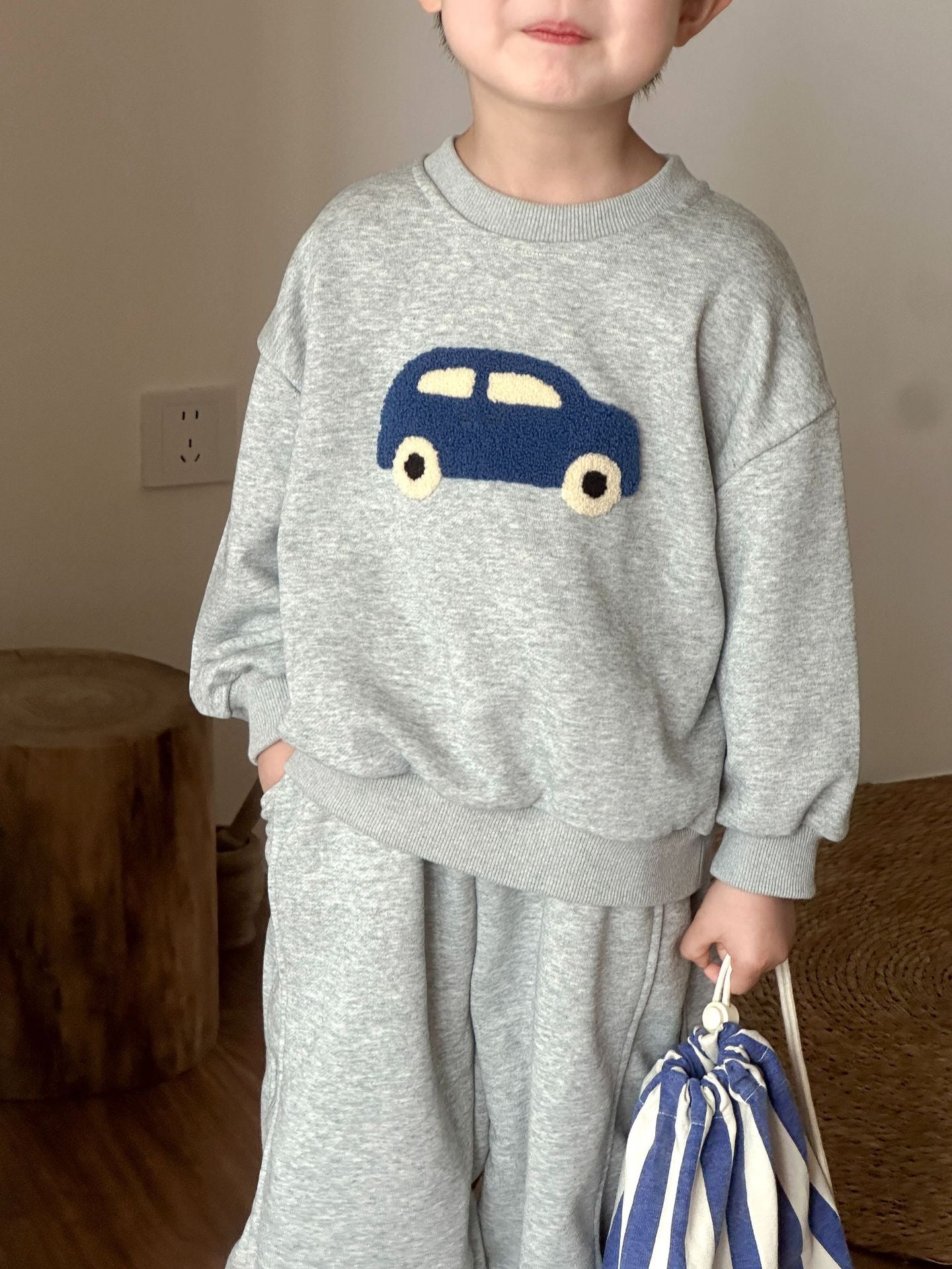 The Vroom Vibes Set is all about fun and comfort. Featuring a soft cotton sweatshirt with a car tufted motif and relaxed-fit matching joggers, it’s a set designed for kids who love to move and play. Perfect for daycare, playdates, or lounging at home — this set combines charm with practicality.